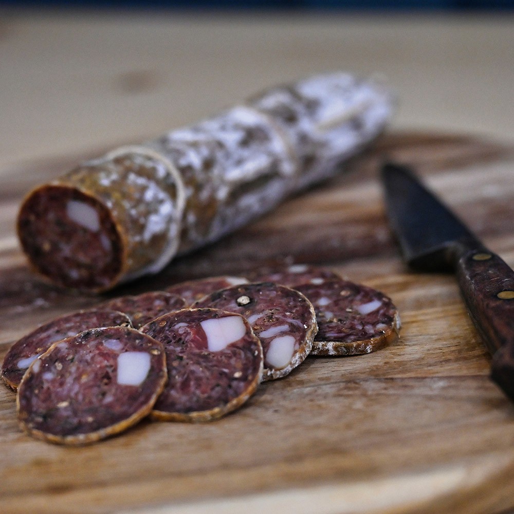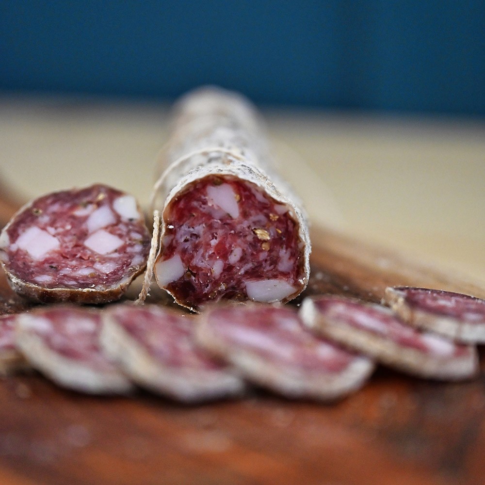 A traditional fennel salami inspired by local flavours and made with a blend of coarsely minced pork and hand diced back fat. Seasoned with sea salt, marjoram and fennel seed, it's slow-cured to develop a gentle sweetness and aromatic depth. Each slice carries the fragrance of the countryside.